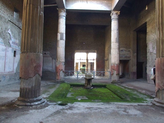 Svaret: ett atrium. Dra mig baklänges. Ett atrium!? Alltså: I de romerska baden fanns inga atrier med öppet i tak och bassänger i mitten. Ett atrium är ett romerskt rum, ett rum i ett hus, ett hus som man bodde i. Fint folk levde i så kallade atriumhus, där atriet var det större representationsrum som mötte besökarna strax innanför ingången. I atriet förvarades familjens vaxporträtt, imagines, och flera atrier hade troligen också hela släktträd uppmålade på väggarna. Atriet var en slags mottagningssal, där man visade upp sin släkt och sina anfäder. Kanske har ni varit i Pompeji och sett ett atrium i något av husen där. De är lätta att känna igen, eftersom de i mitten har ett så kallat impluvium, en liten bassäng, som samlade upp regnvatten. Just som frågan lydde, alltså, ett centralt rum med taköppning och en nedsänkt bassäng. Hade man istället frågat: ”Vad kallas det centrala rummet i ett romerskt hus med taköppning och en nedsänkt bassäng i mitten?” så hade alltså atrium varit korrekt. Men det hade naturligtvis inte haft mycket med baden i Bath att göra.